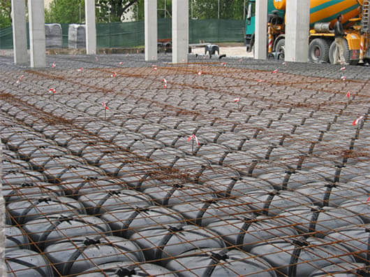 Starting from the ground up, we installed a Cupolex foundation in our buildings that not only raises the floor but also helps water, moisture, and gases escape from beneath. This innovative system creates a ventilated void under the structure, improving air circulation and reducing the risk of moisture buildup. Additionally, it provides extra room for the installation of riser pipes, which vent out to our roof, further enhancing the building’s overall efficiency and sustainability.