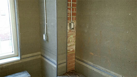 Cement boards, which are water tolerant, removable and washable, are used on the lower portion of our inside walls.